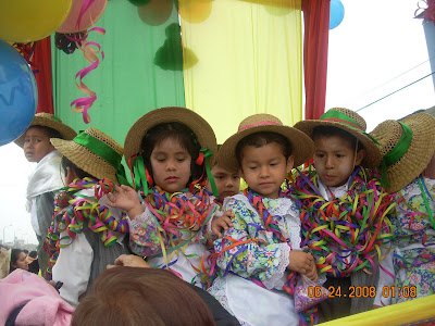 Son 13 danzas interpretadas por los alumnos de cuna - inicial - primaria, otras 3 danzas por los padres de familia y 1 realizada por todos los maestros del colegio. Un total de diecisiete bailes que serán presenciados por toda la comunidad, en un recorrido de más de 20 cuadras, acompañados de carros alegóricos y muchos adornos. Durante estas semanas les presentaremos los detalles de los ensayos e ir adelantando los "temas" de cada danza.