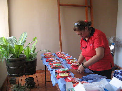 La Primera bolsa del paquete escolar se prepara con cariño y amor, en bolsas especialmente mandadas a hacer con el logo San Mateo Te Ama.